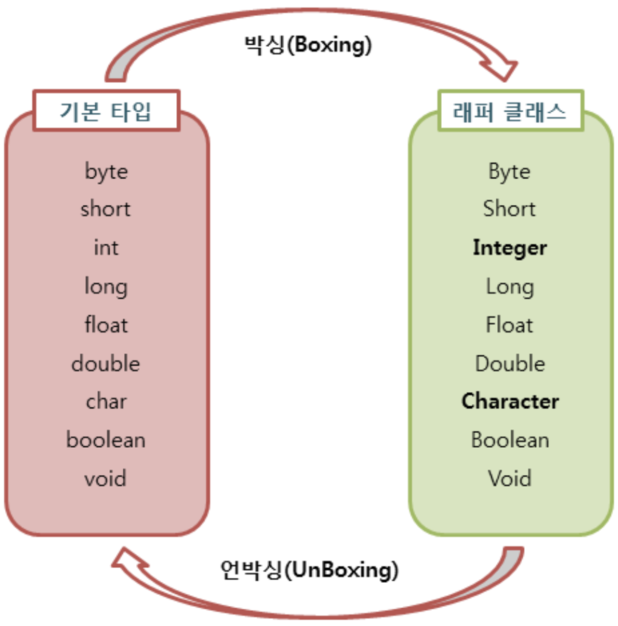 - κΈ°λ³Έ νμ λ°μ΄ν°λ₯Ό κ°μ²΄λ‘ ν¬μ₯ν΄μ£Όλ(Wrapper) ν΄λμ€