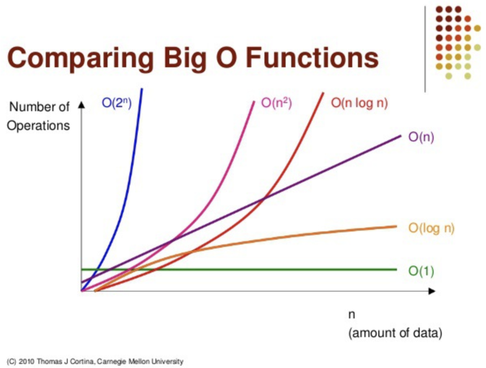 - ์ค๋ฅธ์ชฝ์ผ๋ก ๊ฐ ์๋ก ์๊ฐ ๋ณต์ก๋๊ฐ ํฌ๋ฉฐ(์ํ ์๊ฐ์ด ๊น), ์๊ฐ ๋ณต์ก๋๋ฅผ ๋ฎ์ถ ์๋ก ํ๋ก๊ทธ๋จ ์ฑ๋ฅ์ด ํฅ์๋จ