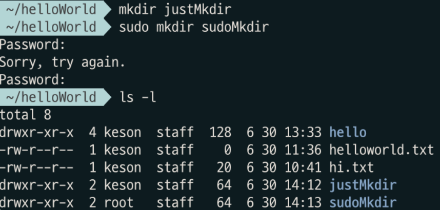 - justMkdir: keson / sudoMkdir: root